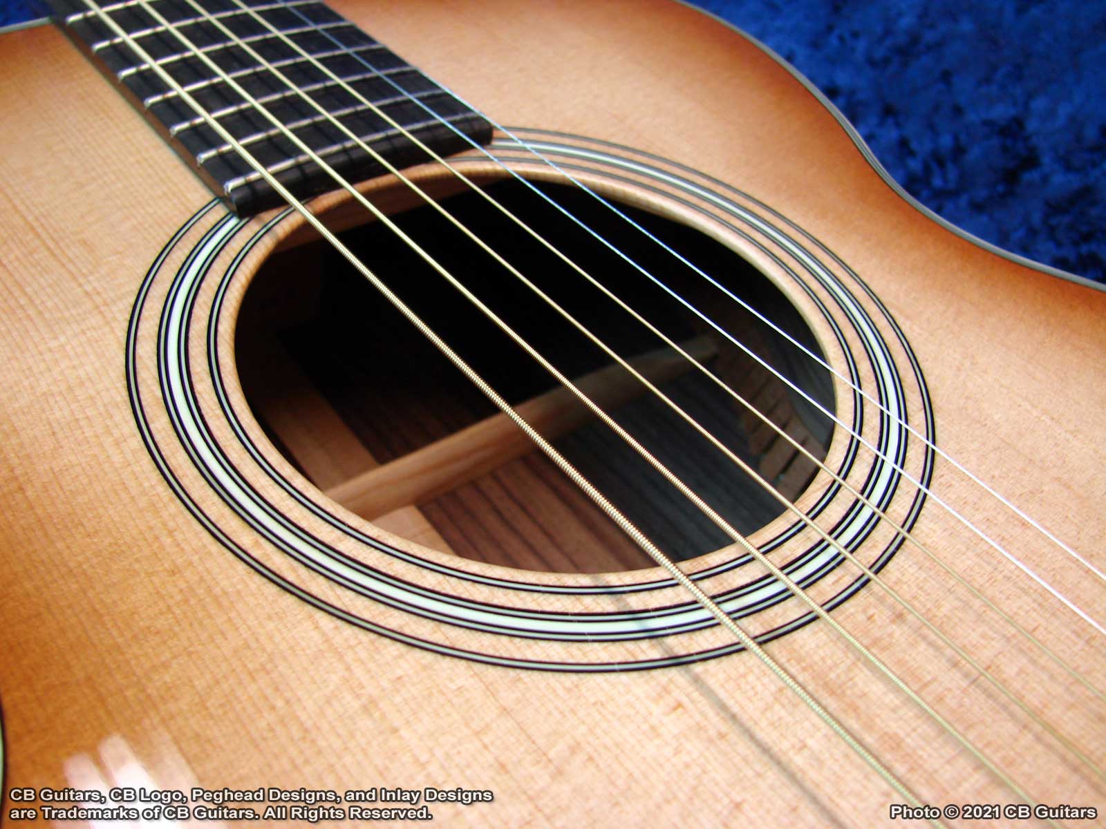 The CB "Single-Ought" GuitarThe "Single-Ought" guitar is Chris' interpretation of the classic "Concert" (0-Size) guitars of the 1930s. Although considered a "Small" instrument, the CB Single-Ought has a voice that belies its small size, thanks to Chris' Forward-Shifted, Hand-Scalloped X-Bracing pattern, which utilizes a single tone bar in the lower bout. We think you will agree that this small-bodied guitar gives up very little to its larger-bodied siblings, possesses the sweetness of tone that these Concert-sized instruments were known for, and has the power to cut through a microphone or an acoustic jam session. Dimensions of the CB Single-Ought are as follows (compare to our other Body Sizes here):
