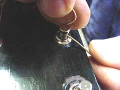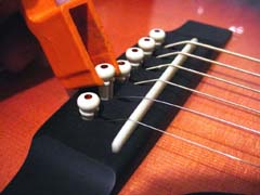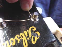 Restringing Your InstrumentsSome of the most common questions I am asked concern restringing instruments. How often should I restring? How can I tell when my instrument needs restringing? What type of strings should I use? What is the proper method for restringing? In this column, I will attempt to answer these questions. How Often Should I Restring?Even the finest instruments are no better than the strings they wear. Strings wear out at different rates for different players depending on several factors: the amount of perspiration secreted by the player's hands; the acidity of that perspiration; how often the instrument is played; the type of string used; and the climate in the area. Because there are so many factors that help determine string life, there is no one schedule for restringing that will fit all needs at all times. I have very little acid in my hands and do not tend to perspire much when I play, but I do play quite a bit, as much as several hours a day; still, a standard set of phosphor-bronze strings generally lasts at least a month for me. I have friends who have very "acidic" hands, and these guys can literally "kill" a set of strings in less than an hour. How Can I tell When My Instrument Needs Restringing?Even though we cannot accurately predict when each person in each set of circumstances needs to restring, there are "warning signs" that we can look for to help us determine when we need to restring. Since both plain (unwound) and wound strings lose their tensile strength (the ability to maintain a consistent tension along its length) over time, strings will lose their ability to stay in tune as they wear out. If you have noticed that your instrument doesn't want to stay in tune and your strings are months old, restringing may well be the solution to your problem. Perspiration and corrosion can build up in the windings of strings, killing their sound so that they have more a "muddy" sound than a "snappy" sound. If you have noticed that your instrument sounds "muddy", that the notes are indistinct and the instrument doesn't "ring" like it used to, restringing may be in order. If this is the case, you should be able to see some discoloration of the strings, usually occurring on the wound strings where your fretting hand resides and to a lesser extent nearer the bridge where you pick. Windings loosen over time, causing uneven tonal response and tendency of the strings to break. If your strings have been on for a while and you can see that the windings appear to be separating, you should change strings as soon as possible. The windings usually tend to separate over the bridge saddle and the nut (which is why string breaks so often occur in these areas), and to a lesser degree where you pick (especially if you are a fingerstyle player who uses metal fingerpicks). The new-style "coated" strings (such as Elixir® strings by Gore, Inc.) offer greatly-increased string life to many players, and I have found that they last about three times as long as standard phosphor-bronze strings (at about three times the price). They tend to have a crisper tone than uncoated strings but can sound "tinny" on some instruments (for example, I don't like them on mandolins or certain guitar body styles). The idea behind these strings is that the polymer coating will not allow contaminants to work their way into the string windings, and they work well for that purpose. As these strings age, the coating is picked away from the string windings and begins to fray; after some time, the strings actually begin to look "hairy" around the area where the pick comes in contact with the string, appearing as though they are covered in fine white hair. Shortly after they assume this appearance, their sound will begin to deteriorate and they will become prone to breakage, so this serves as a very good indicator of when this type of string needs to be changed. What Type Of Strings Should I Use?There are many different brands and types of strings available, and the type of strings to use depends on many factors such as type of instrument, type of music you play, the conditions you play in, and of course your subjective taste. I suggest you try several different brands and see what you like the best, bearing in mind that every instrument is different and the strings that sound the best on one instrument may not be the best for another. However, I have found that most guitar players' needs are met by a good phosphor-bronze acoustic medium-gauge string, such as the D'Addario brand. I play D'Addario strings myself, and I install D'Addario phosphor-bronze medium-gauge strings on all new CB guitars. Please remember that heavy-gauge strings will destroy a finely-crafted instrument, and the use of heavy-gauge strings will void the warranty on most high-quality instruments (including mine). What Is The Proper Method For Restringing?It seems there are almost as many methods for restringing as there are people who accomplish the task. However, people who ask me how to restring want to know how I do it, so here goes: First of all, and I know many would disagree with me on this, do not remove all the strings at once. Replace your strings one at a time. The reason for this is simple: a neck and truss rod becomes "loaded" structurally to properly support a certain pull weight, and repeated loosening and re-tensioning of the full force of string tension can result in failure of the truss rod, warping of the neck wood, or undue stress on the neck/body dovetail joint. This may seem a bit extreme, and it is indeed unlikely that the practice of changing strings all at once would have a catastrophic result such as truss rod breakage, but the neck of your instrument is a finely tuned system. Repeatedly removing all tension and restoring in can in fact damage the neck, just as bending a piece of metal back and forth repeatedly can break it. You can clean and oil your fingerboard underneath the strings or a bit at a time as you remove in